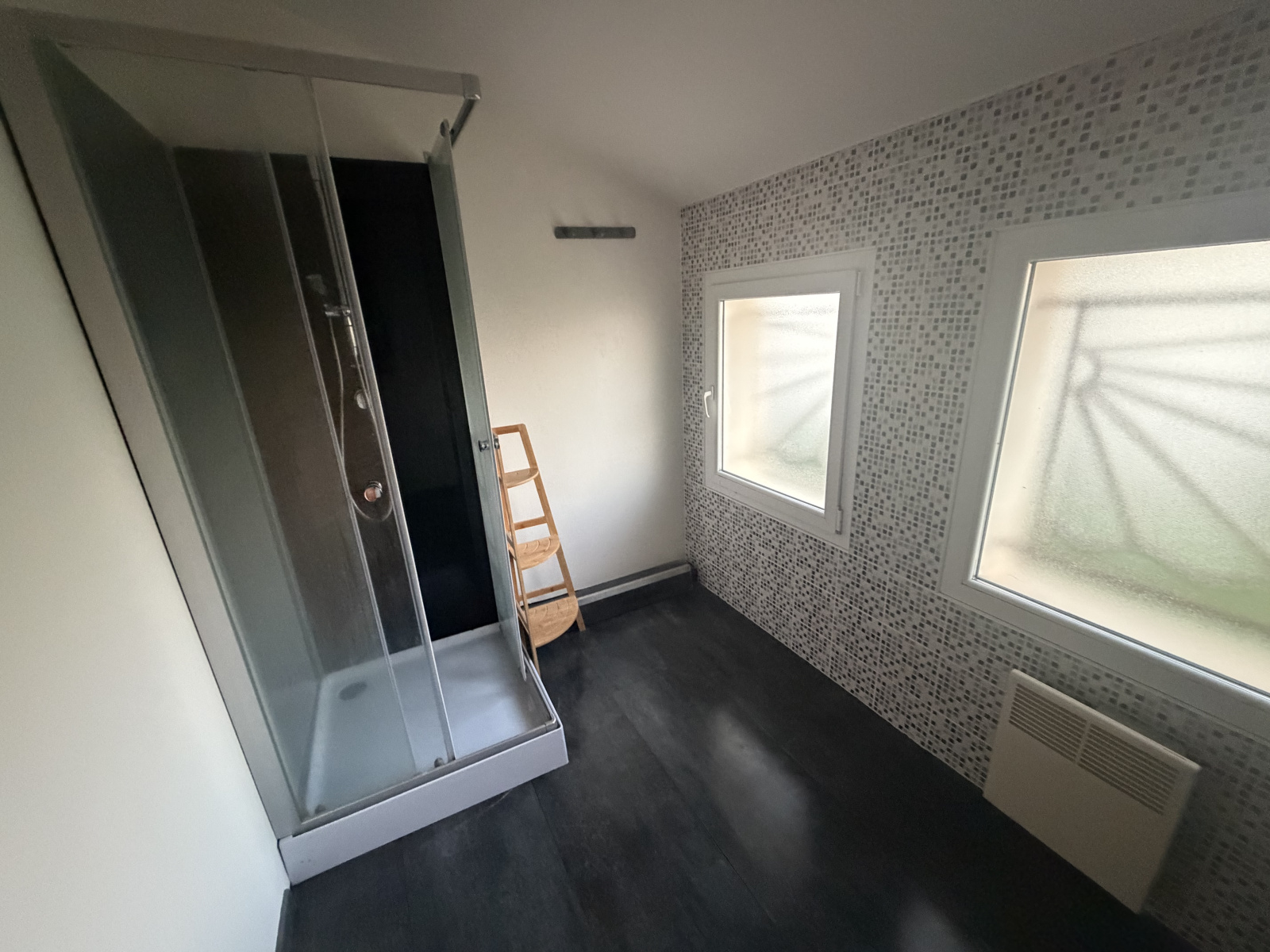 À l’étage, la maison dispose de deux chambres confortables ainsi que d’une salle d’eau fonctionnelle.