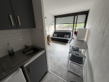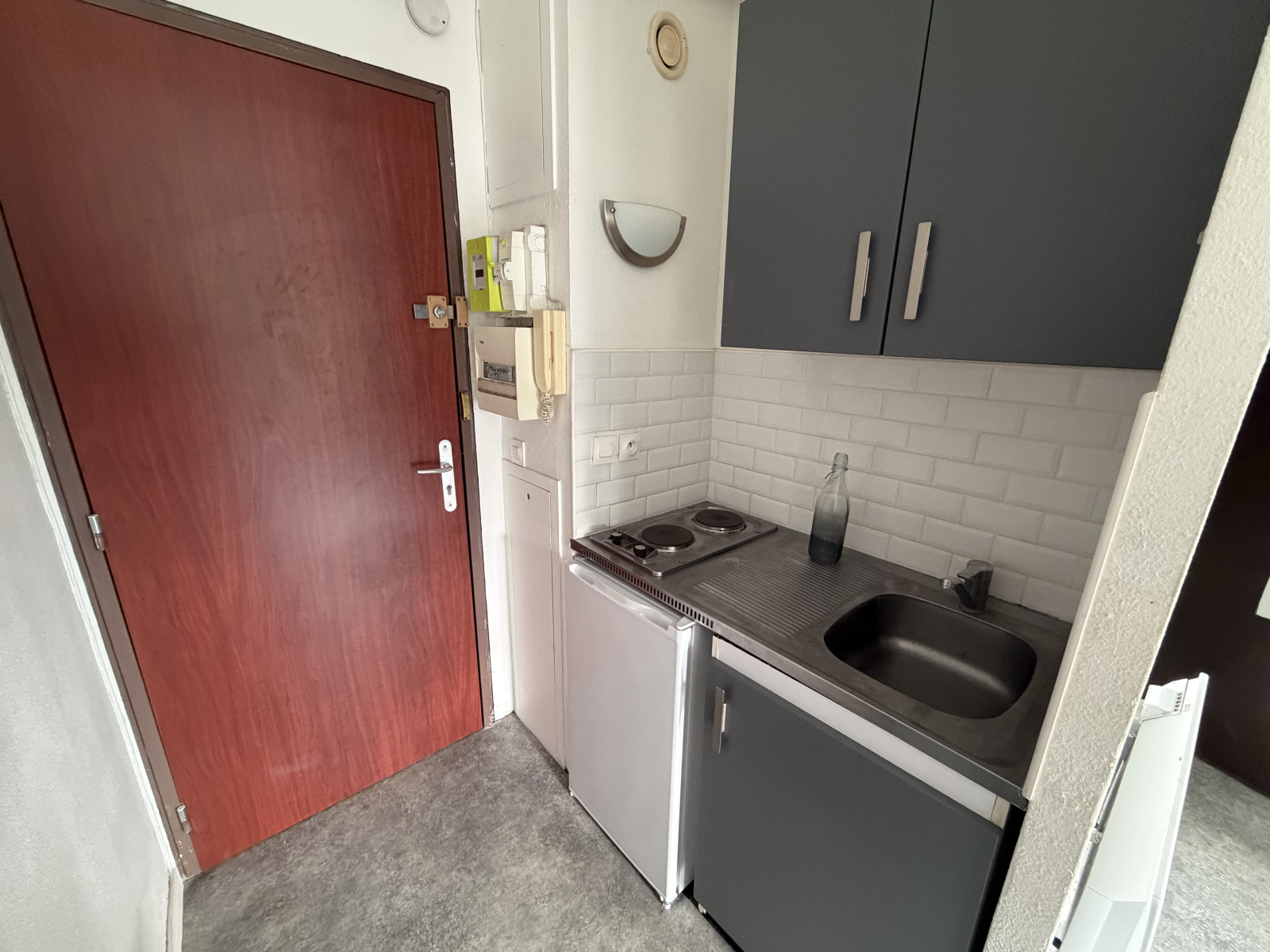 Ce studio se compose d’une pièce principale lumineuse, d’un coin kitchenette entièrement équipé (plaques, réfrigérateur, micro-ondes, vaisselle), d’une salle d’eau avec WC, et d’un agréable balcon privatif de 3 m².