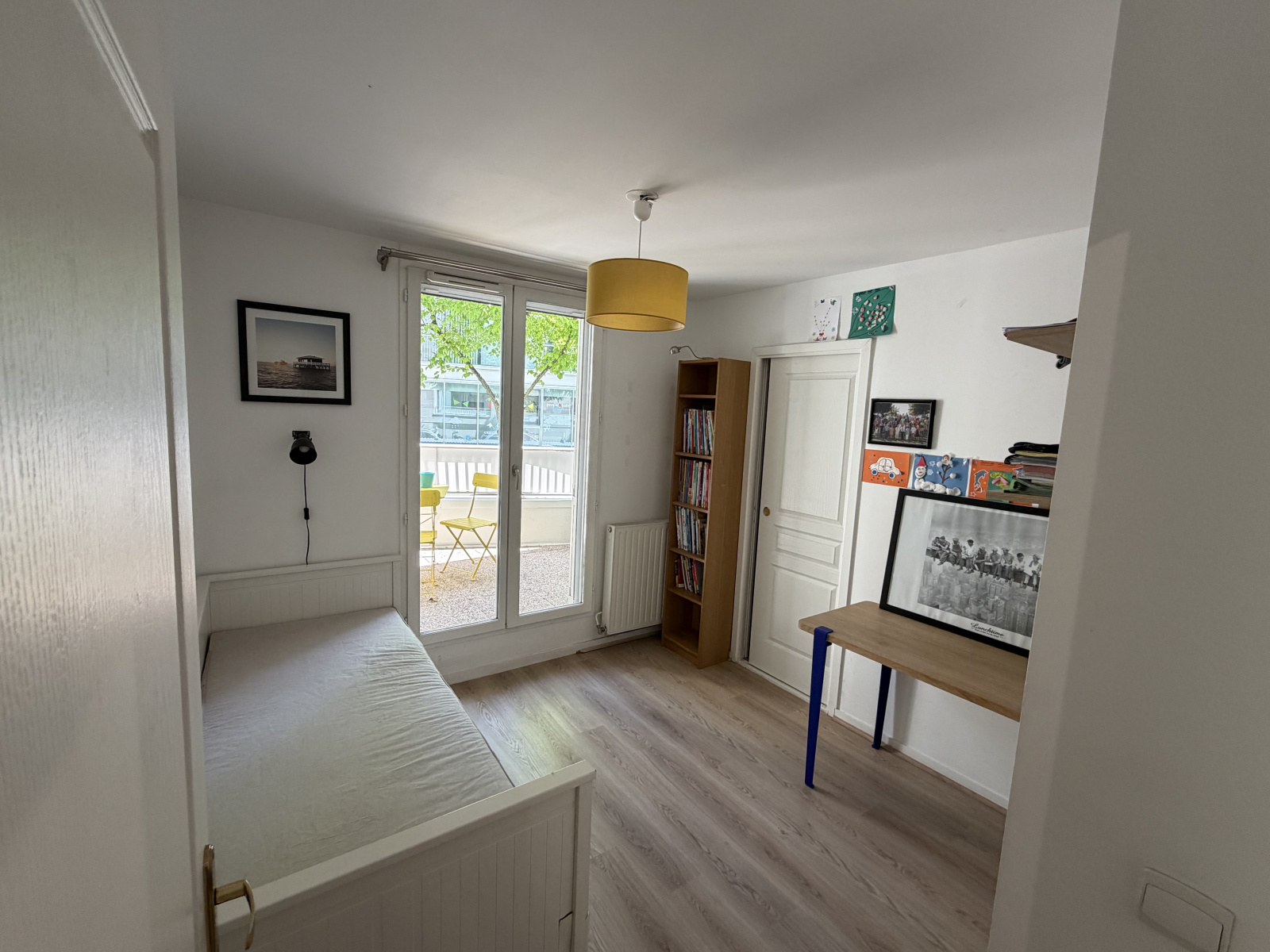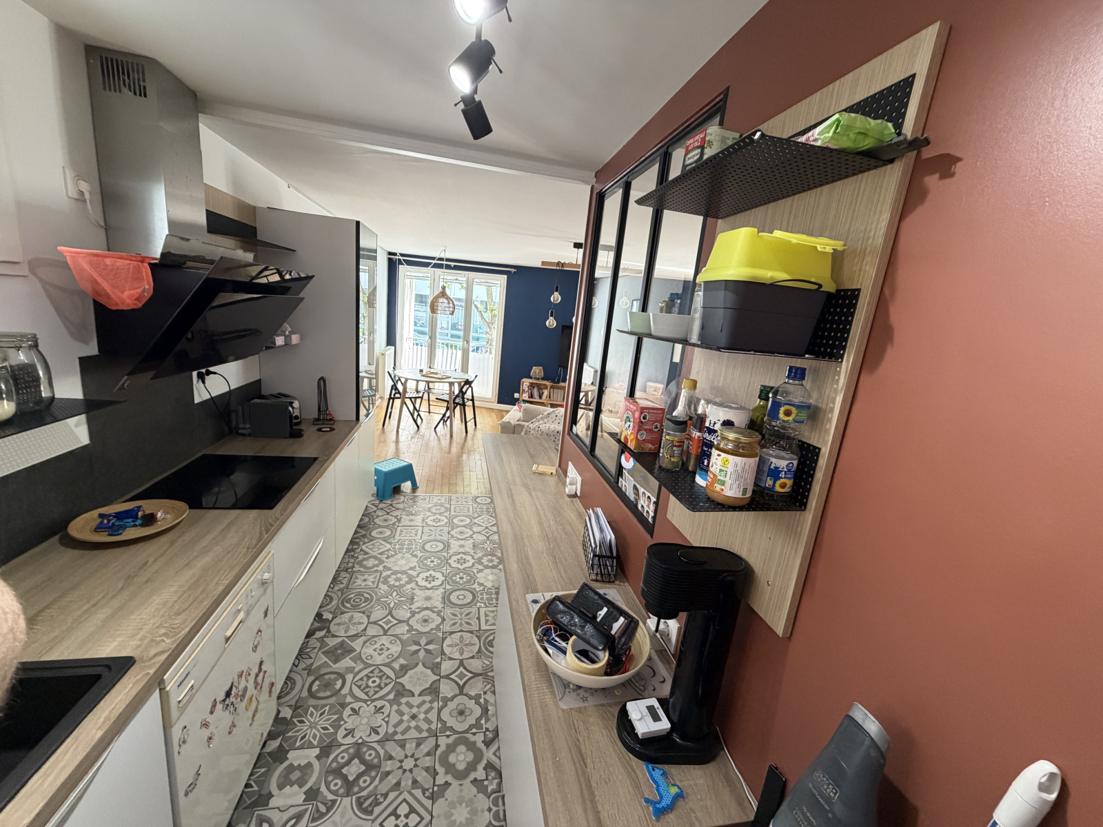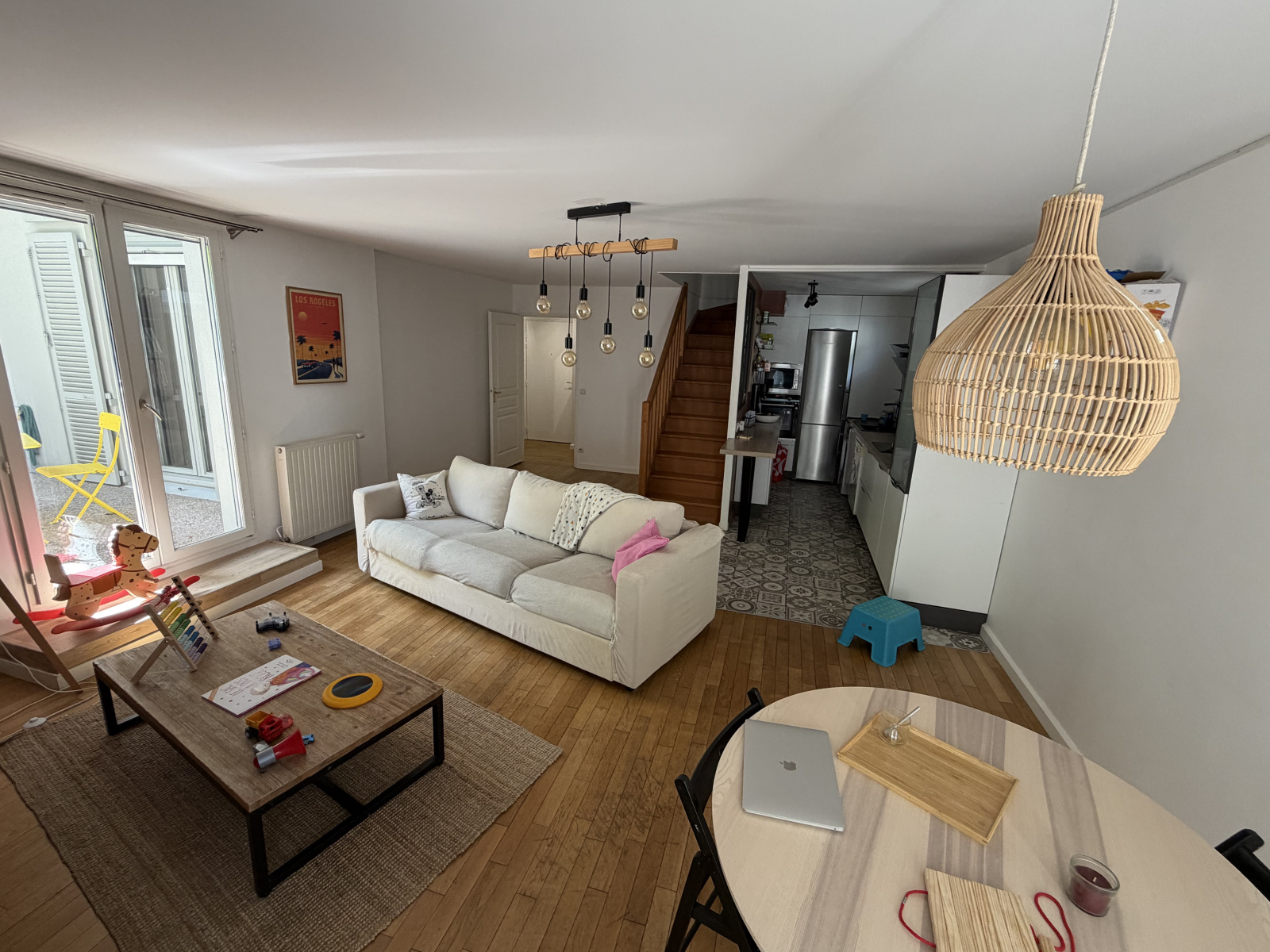 Au rez-de-chaussée, vous trouverez une entrée, un WC indépendant, une cuisine équipée, ainsi qu’un séjour de 35 m² exposé Sud, ouvrant sur une terrasse d’environ 10 m², donnant sur une rue calme.
