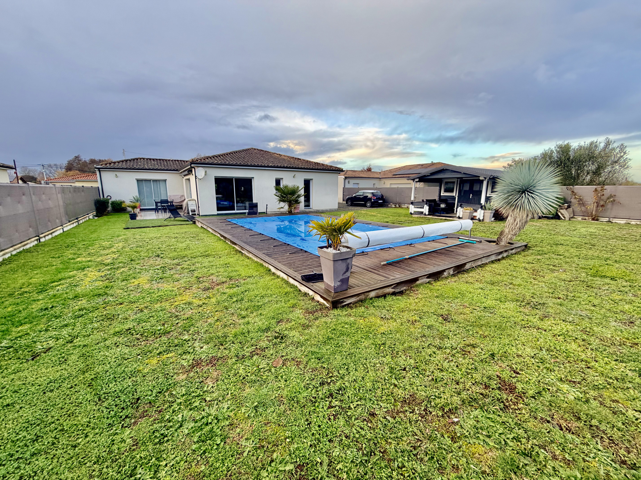 L'extérieur est un vrai plus : une grande véranda vous permet de profiter de la lumière toute l'année. Un garage est également présent.