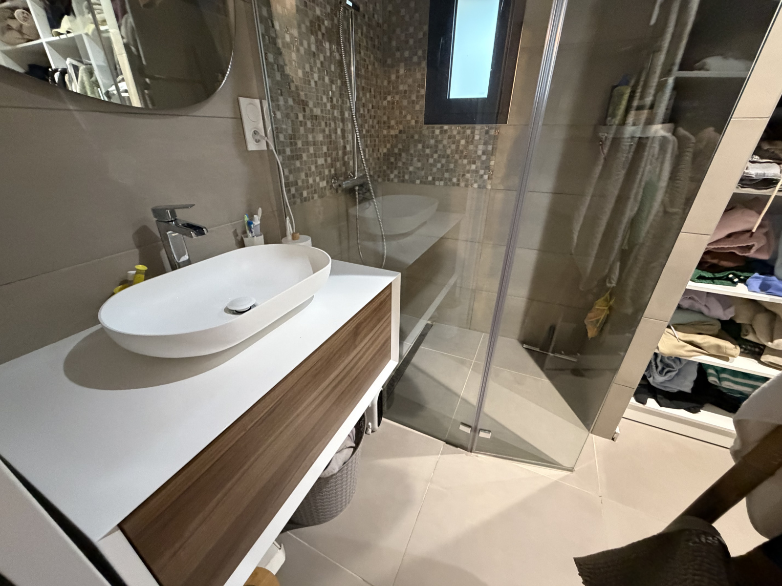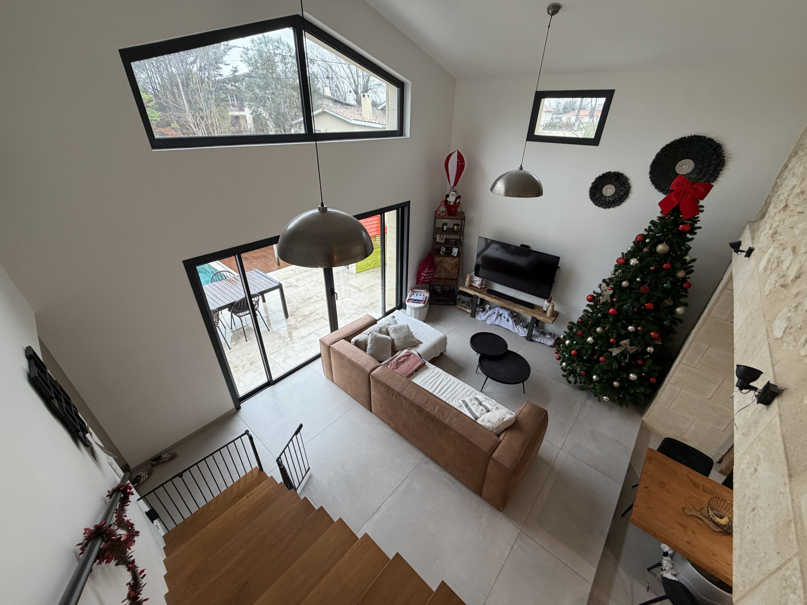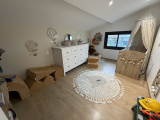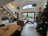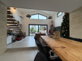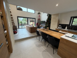 Elle se compose au rez-de-chaussée d’une pièce de vie lumineuse de 45 m² avec séjour et cuisine ouverte équipée, plafond cathédrale et grande baie vitrée donnant sur le jardin et la piscine. Une suite parentale en RDC avec salle d’eau et dressing, une entrée, un WC indépendant ainsi qu’un cellier/buanderie complètent ce niveau.