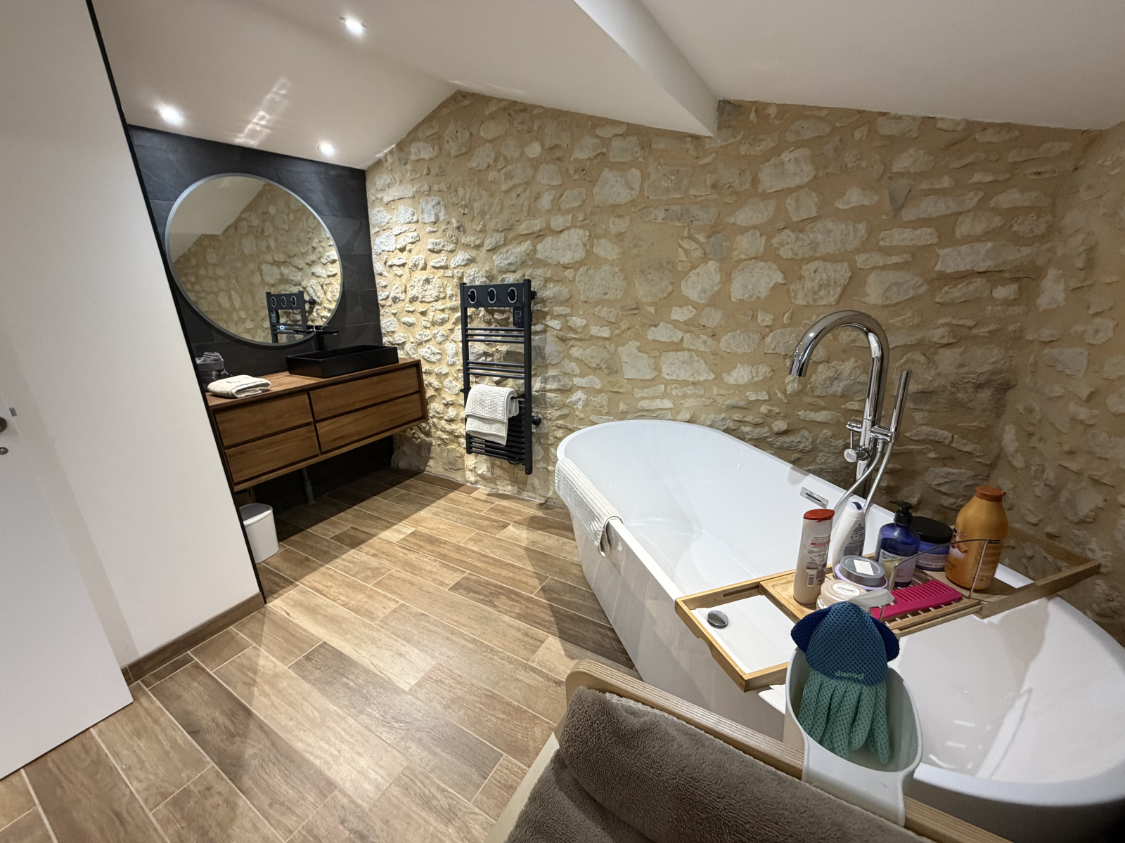 Les + : charme de la pierre, climatisation réversible, cuisine équipée, rénovation de qualité, emplacement recherché proche commodités.