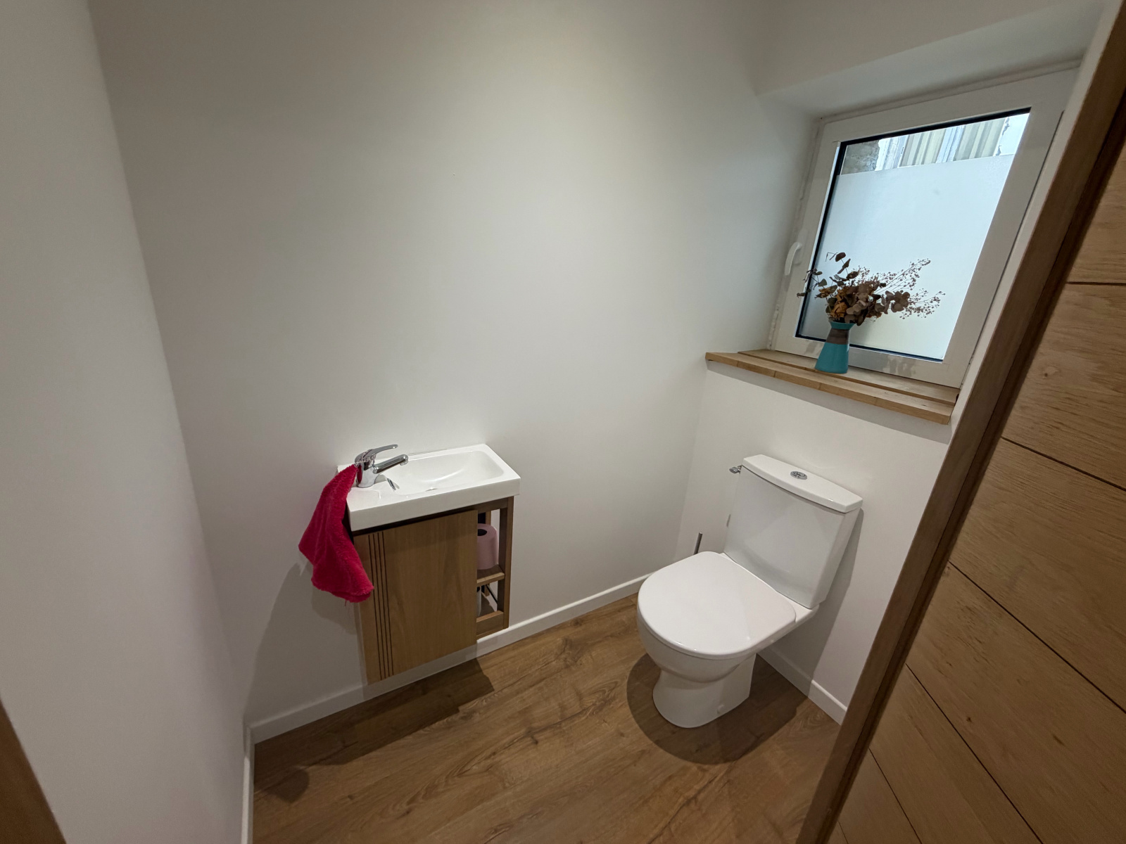 Une entrée avec WC indépendant et lave-mains complète ce niveau.