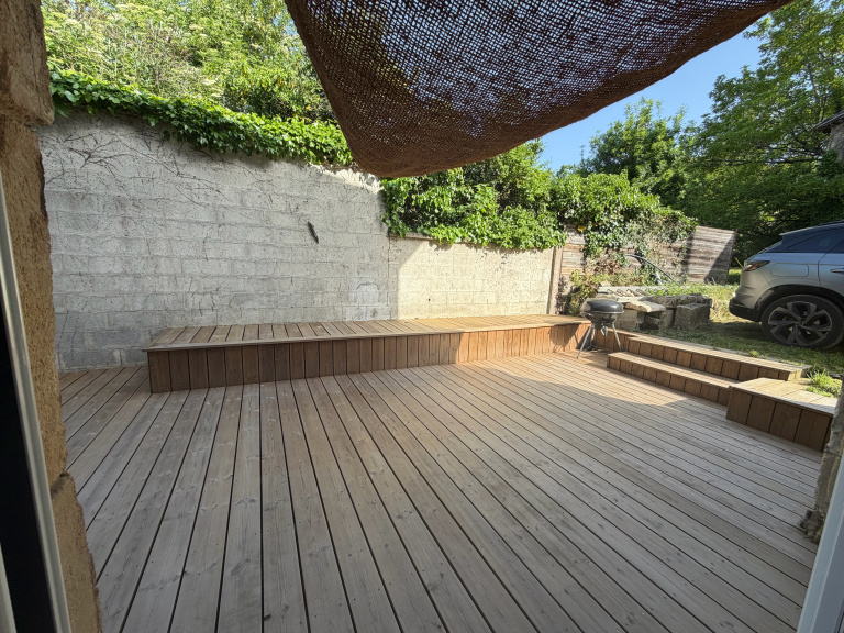 Côté extérieur, profitez d’une agréable terrasse en bois de 20 m², parfaite pour vos moments de détente.
