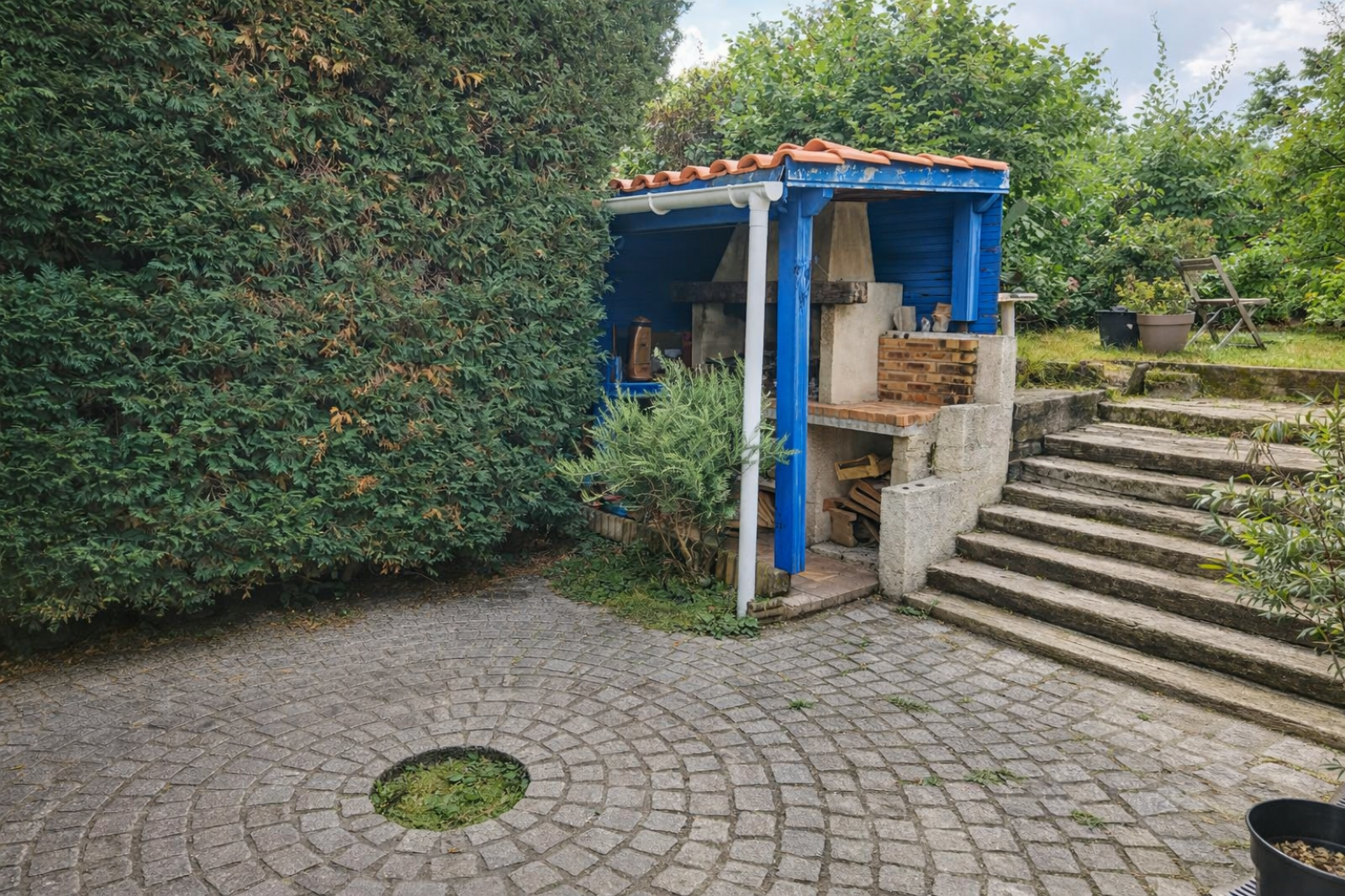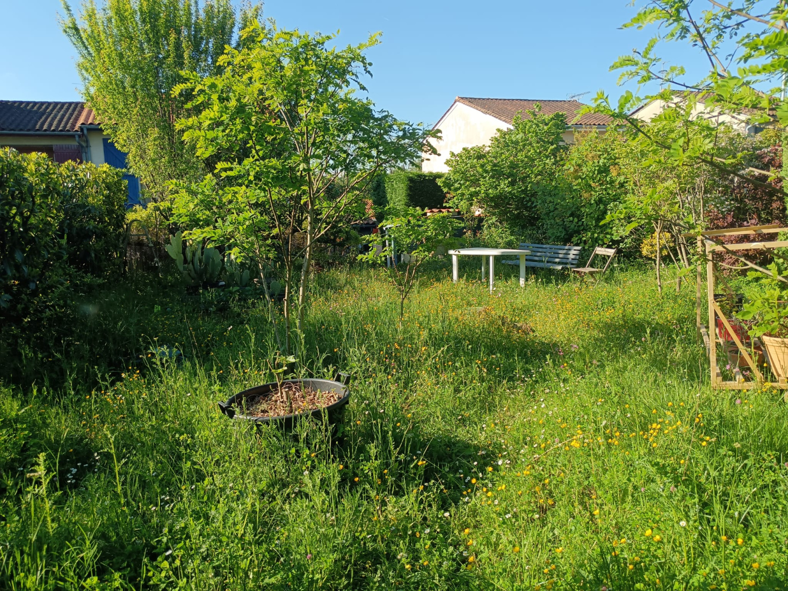 À l’extérieur, vous profiterez d’un jardin de 383 m², parfait pour les moments de détente en famille, les repas en plein air ou les projets d’aménagement paysager.