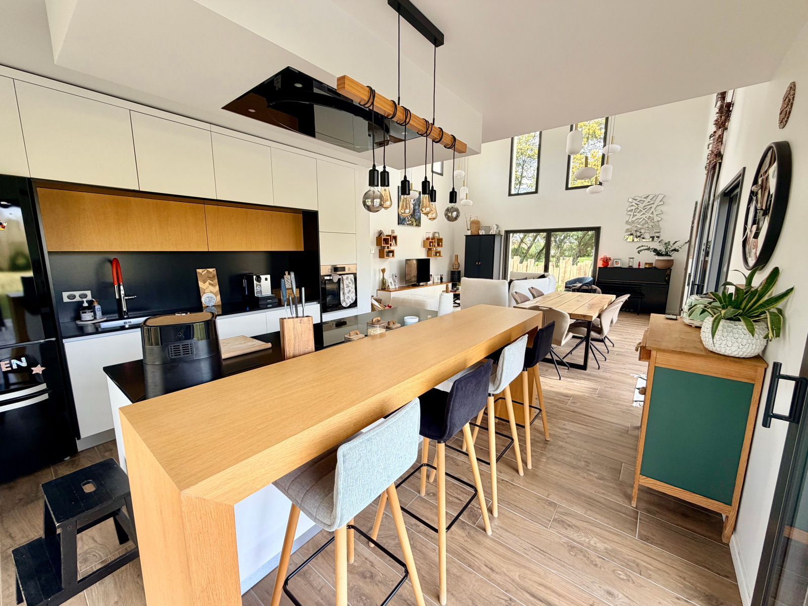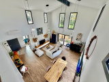 Située à seulement 3 minutes du centre de Fargues-Saint-Hilaire, à proximité immédiate des écoles et commerces, découvrez cette superbe maison d’architecte de 185 m² habitables, offrant des prestations de qualité dans un environnement calme et sans vis-à-vis. Dès l’entrée, vous serez séduits par les volumes et la luminosité. La maison s’ouvre sur une belle entrée avec vestiaire et WC indépendant, menant à une magnifique pièce de vie baignée de lumière avec séjour cathédrale de 6 mètres de hauteur sous plafond. De grandes baies vitrées apportent une luminosité exceptionnelle et offrent différentes perspectives sur l’extérieur : l’une donnant sur un élégant jardin japonais avec terrasse, les autres ouvrant sur le jardin principal, sans aucun vis-à-vis. La pièce de vie se prolonge par une cuisine aménagée sur mesure de grande qualité, parfaitement intégrée et pensée pour le confort du quotidien. La maison propose une organisation idéale avec deux espaces nuit distincts : • Un espace parental comprenant une chambre climatisée, un dressing, une salle d’eau et un WC. • Un second espace nuit composé de deux chambres spacieuses avec placards sur mesure, ainsi qu’une salle de bain mixte avec douche, baignoire et WC. Une buanderie aménagée complète les espaces fonctionnels. À l’étage, une mezzanine de 22 m² reposant sur un plancher hourdis, offrant un espace confortable pouvant accueillir un bureau, un espace détente ou une quatrième chambre, avec climatisation réversible. Côté prestations techniques : Aspiration centralisé, chauffage au sol par pompe à chaleur Climatisation réversible À l’extérieur, vous profiterez d’un terrain clos et arboré de 749 m², piscinable, avec terrasse bois d’environ 60 m², parking en pavés de granit et portail électrique. Un garage attenant de 22 m², isolé et carrelé, accessible directement depuis la maison, vient compléter l’ensemble. La propriété bénéficie d’un cadre naturel exceptionnel : à l’arrière du jardin, un grand terrain en contrebas et une forêt classée en zone agricole non constructible, garantissant un environnement préservé et durablement dégagé. Une maison lumineuse, aux volumes remarquables et aux prestations soignées, idéale pour une famille recherchant confort, calme et proximité de Bordeaux.